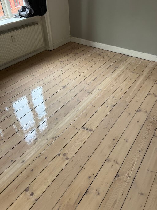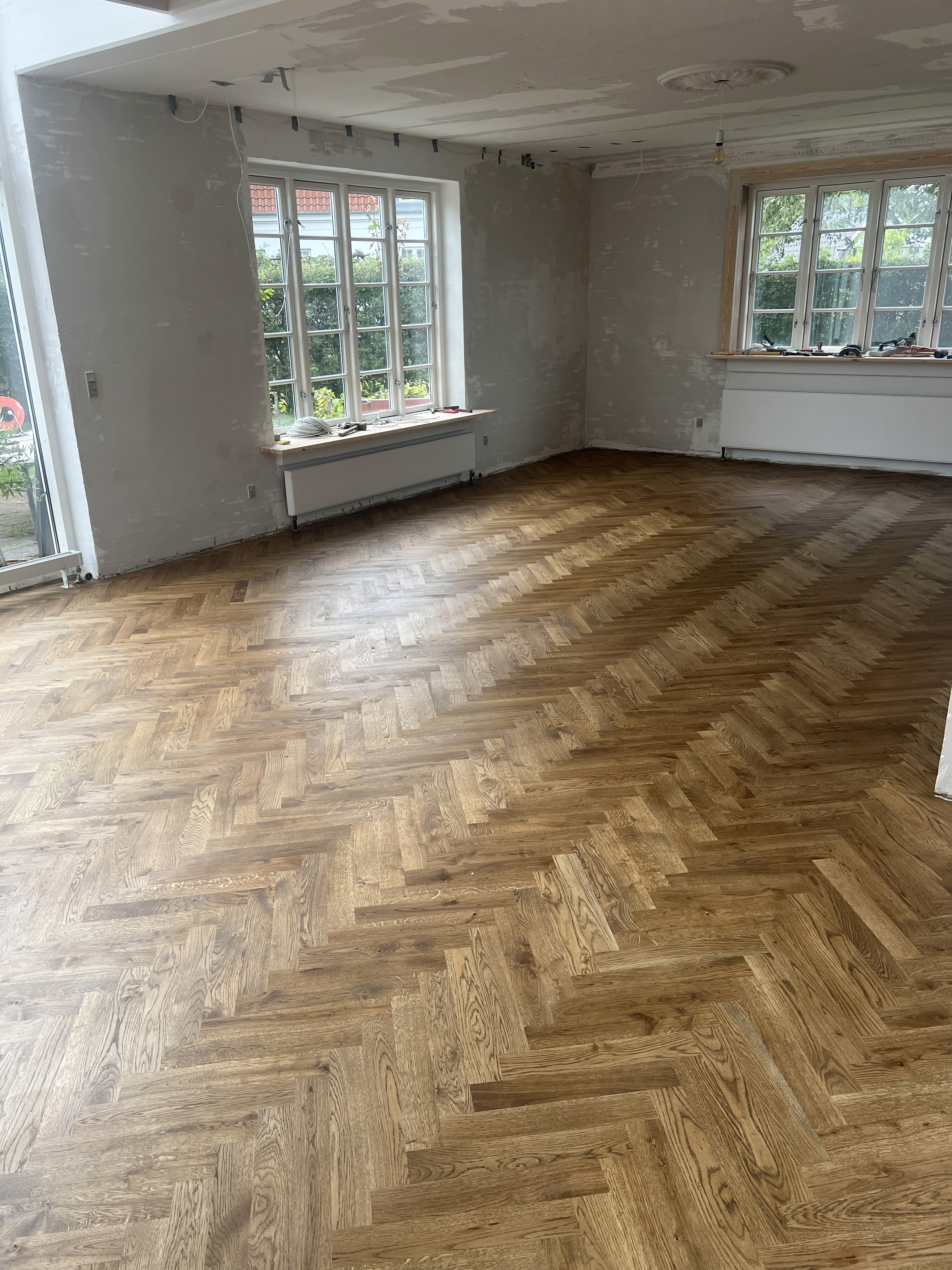 Dine gulve har nu fået et nyt liv, — pråcis som du ønskede det. Nyd kvaliteten og det fornyede udtryk i mange år frem.