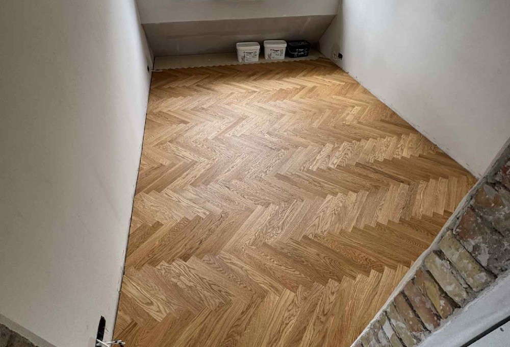 Olie trænger dybt ned i træet og giver en rig og levende overflade, hvor årerne træder tydeligt frem. Det gør gulvet smukt, varmt og naturligt at se på.
